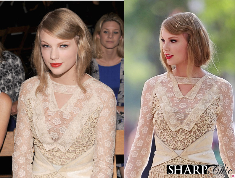 The country turned pop singer Taylor Swift wowed onlookers as she treated the New York pavement as her very own runway in an elegant but vintage style lace ivory dress on her way to the Rodarte Fashion show in New York this past Tuesday.