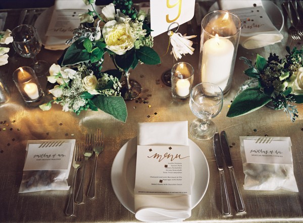 Getting creative for the place setting certainly showcases your personality as a couple and you can really go all out hiring unique glasses and charger plates.
